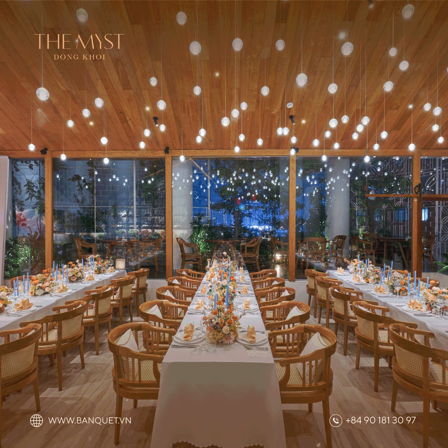 Tại The Myst, mỗi bữa tiệc được nâng tầm với set menu tuyển chọn, phong cách phục vụ chỉn chu và không gian riêng tư, lý tưởng cho những buổi tiệc doanh nghiệp sang trọng hay bữa tiệc cuối năm mang tính cá nhân hoá cao.